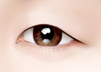 无双眼皮的眼睛切开眉毛下方,提拉肌肤后并进行双眼皮线打造鲜明双眼皮线