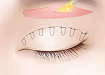 在眼皮下垂遮挡视野时切开眉毛下部分提升皮肤的手术法