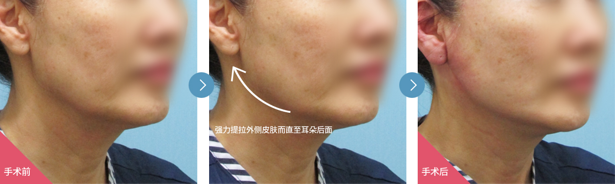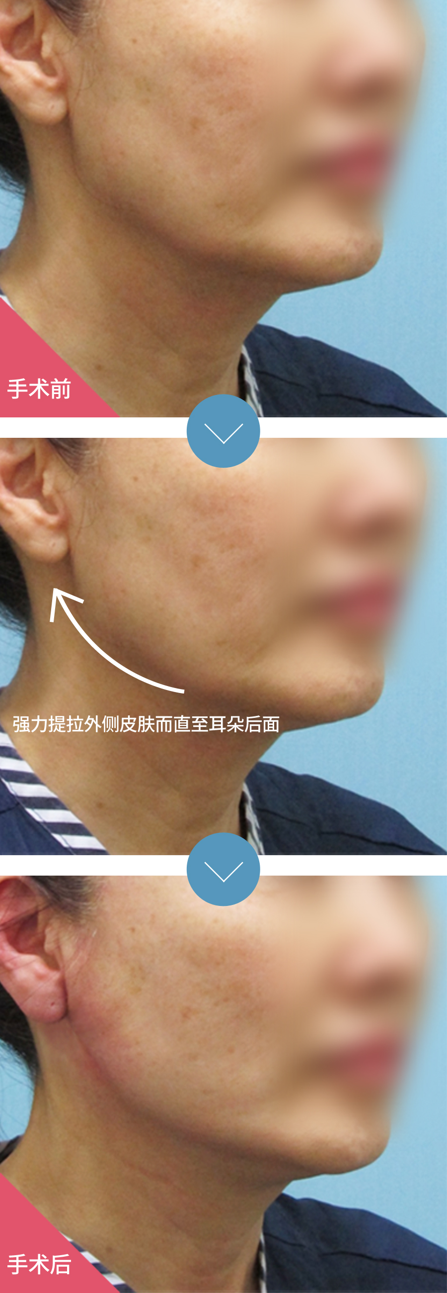 同时使用不融化的线而切实有效的提拉肌肤,展现不亚于面部手术的强力提拉效果