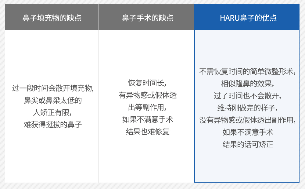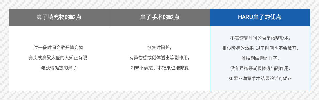 现有的鼻子填充物提升鼻尖有限, 但HARU鼻子 可以充分提高鼻尖, 鼻子填充物作为坚实的支撑作用, 完善鼻梁宽阔和紧致的确定, 打造挺拔和挺直的鼻子形状