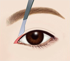 同时开后眼角和下眼角,将眼睛横向长度与纵向长度同时拓宽,