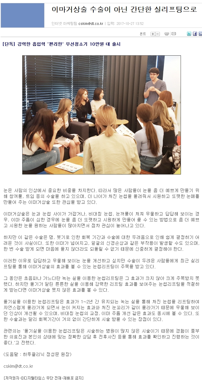 [언론] 이마거상술 수술이 아닌 간단한 실리프팅으로