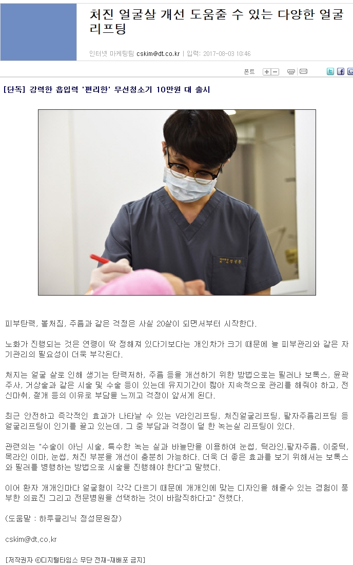 [언론] 처진 얼굴살 개선 도움줄 수 있는 다양한 얼굴리프팅