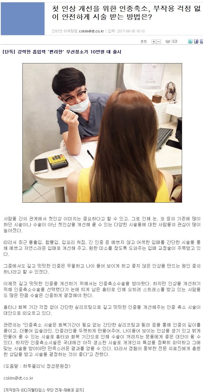 [언론] 첫 인상 개선을 위한 인중축소, 부작용 걱정 없이 안전하게 시술 받는 방법은?