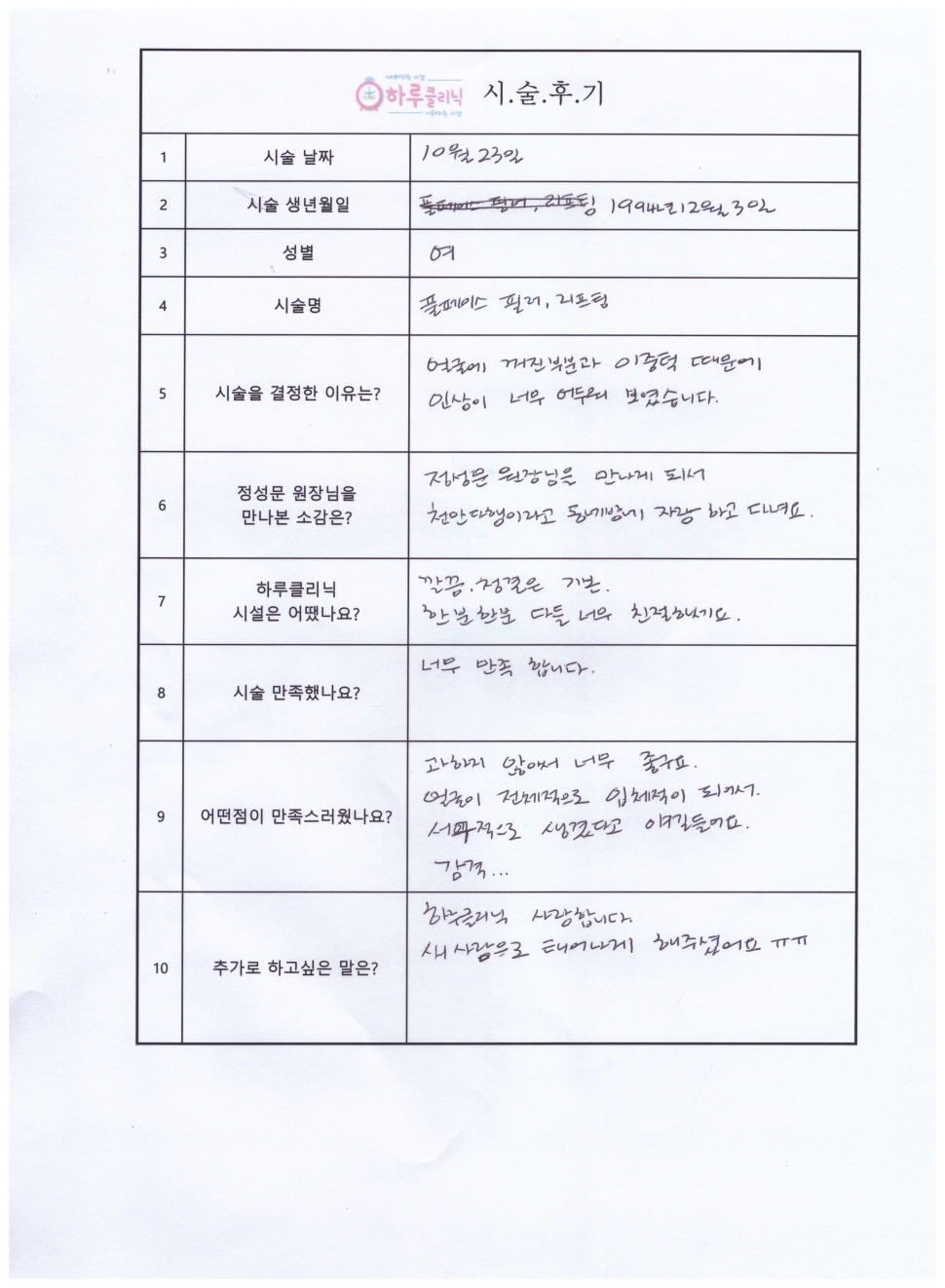 하루코,리프팅,필러