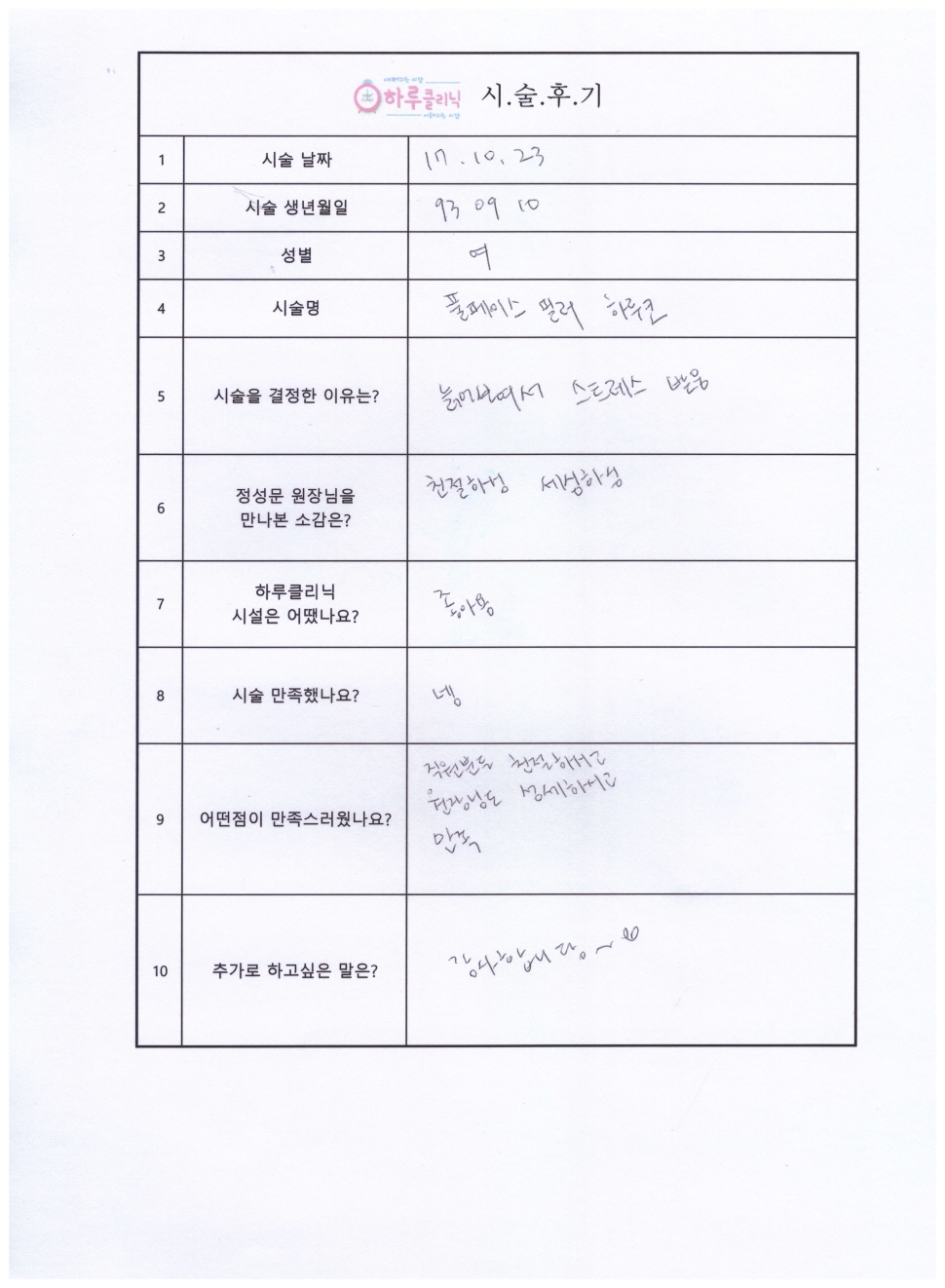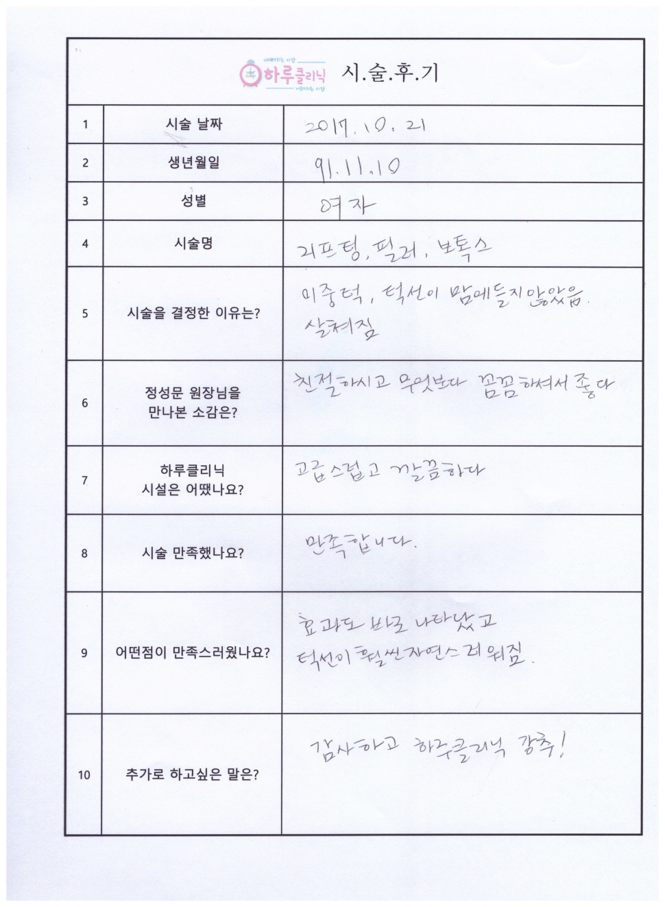 하루리프팅,필러,보톡스