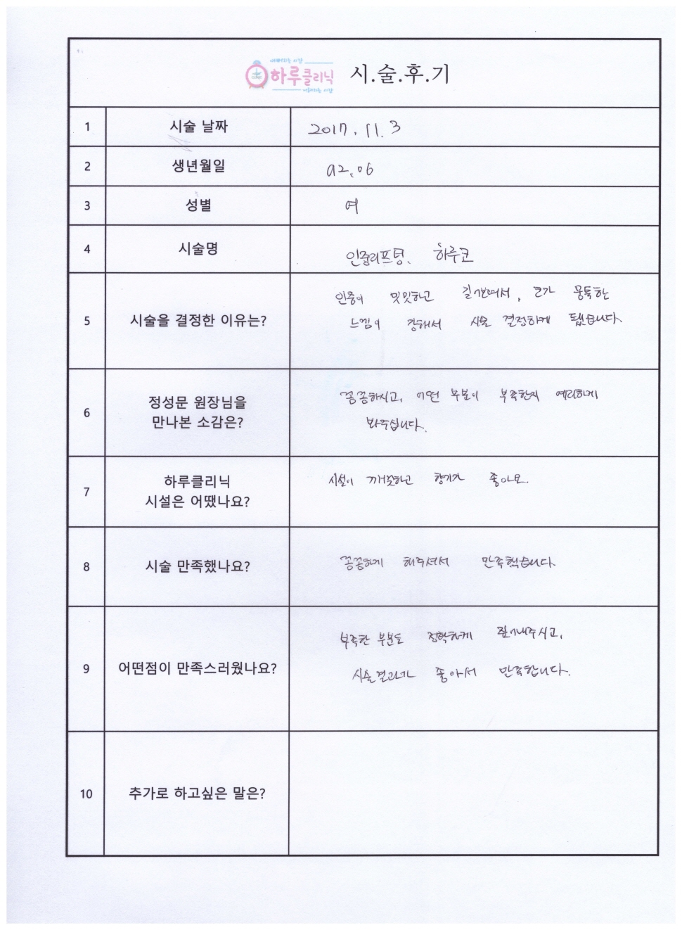 인중리프팅,하루코