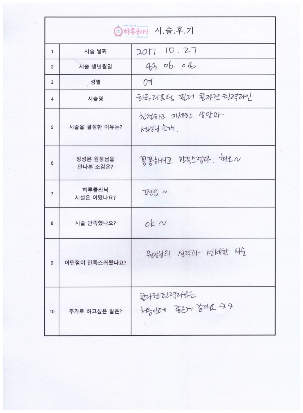 하루리프팅,필러,콜라겐탄력라인
