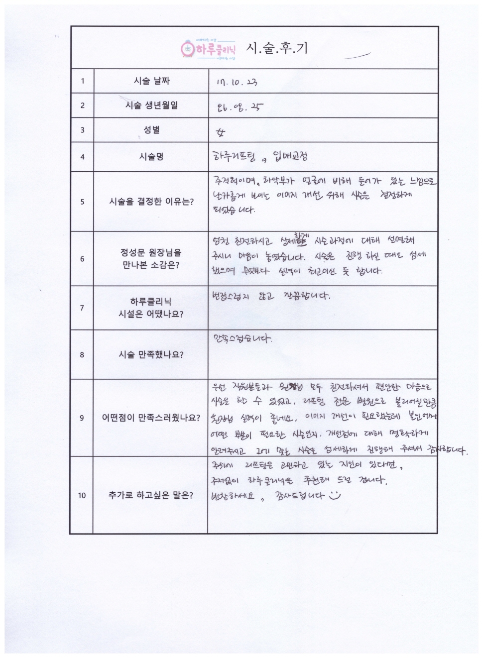 하루리프팅,입매교정