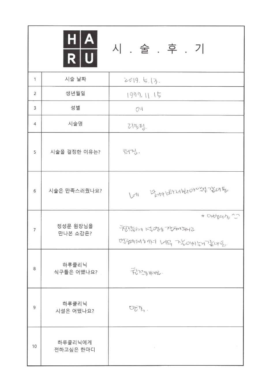 하루 리프팅