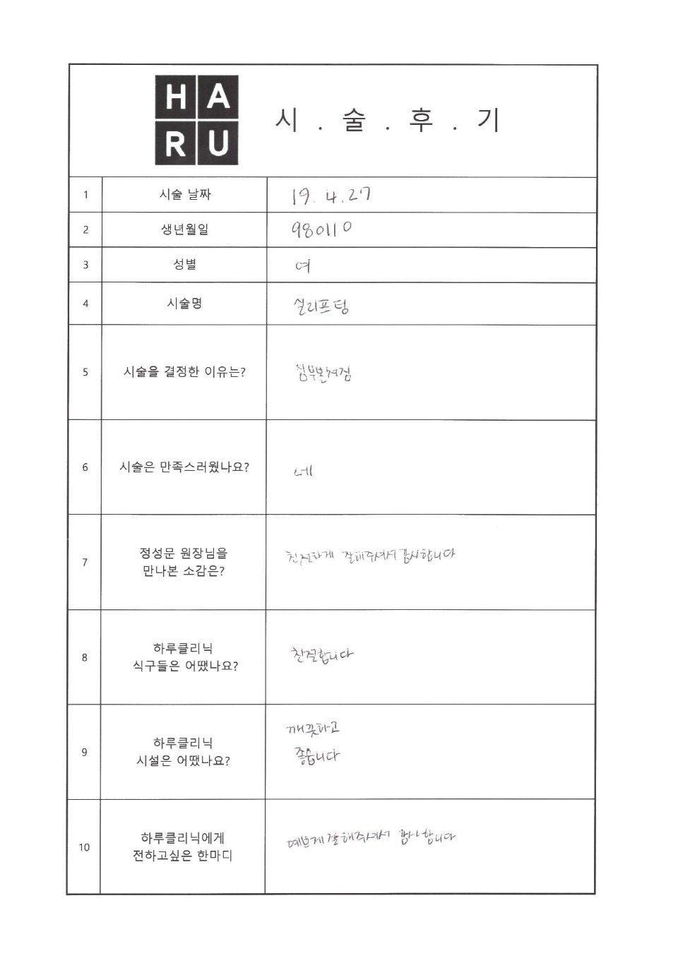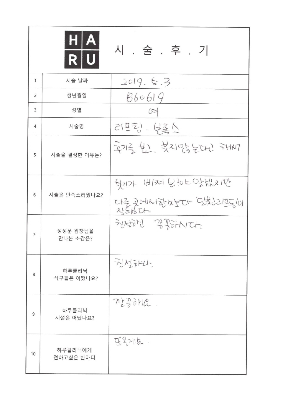 하루 리프팅
