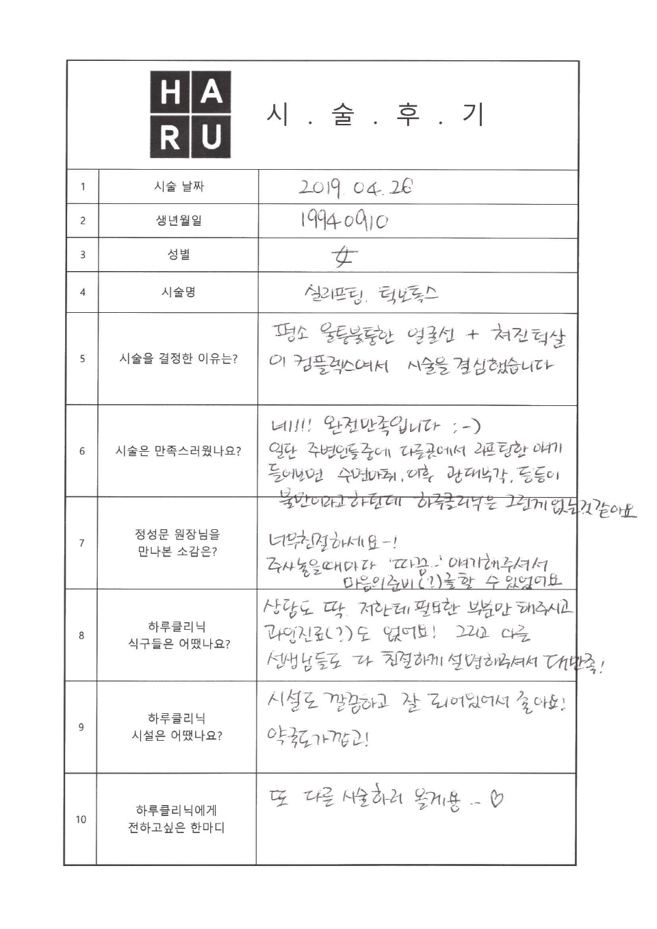하루 가슴 리프팅