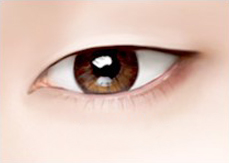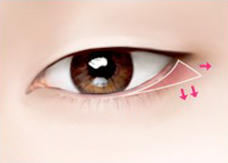 目尻が上がった場合、目尻を下に下げて、スムーズで清純なイメージを作ります