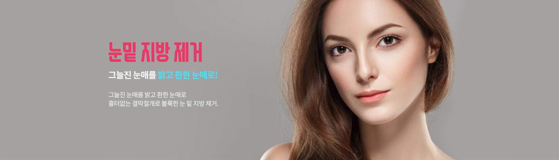 눈밑에 튀어나는 지방은 피곤한 인상을 주고 눈밑에 그늘이 생긴 것처럼 보이는 다크써클의 원인이 되기도 합니다.